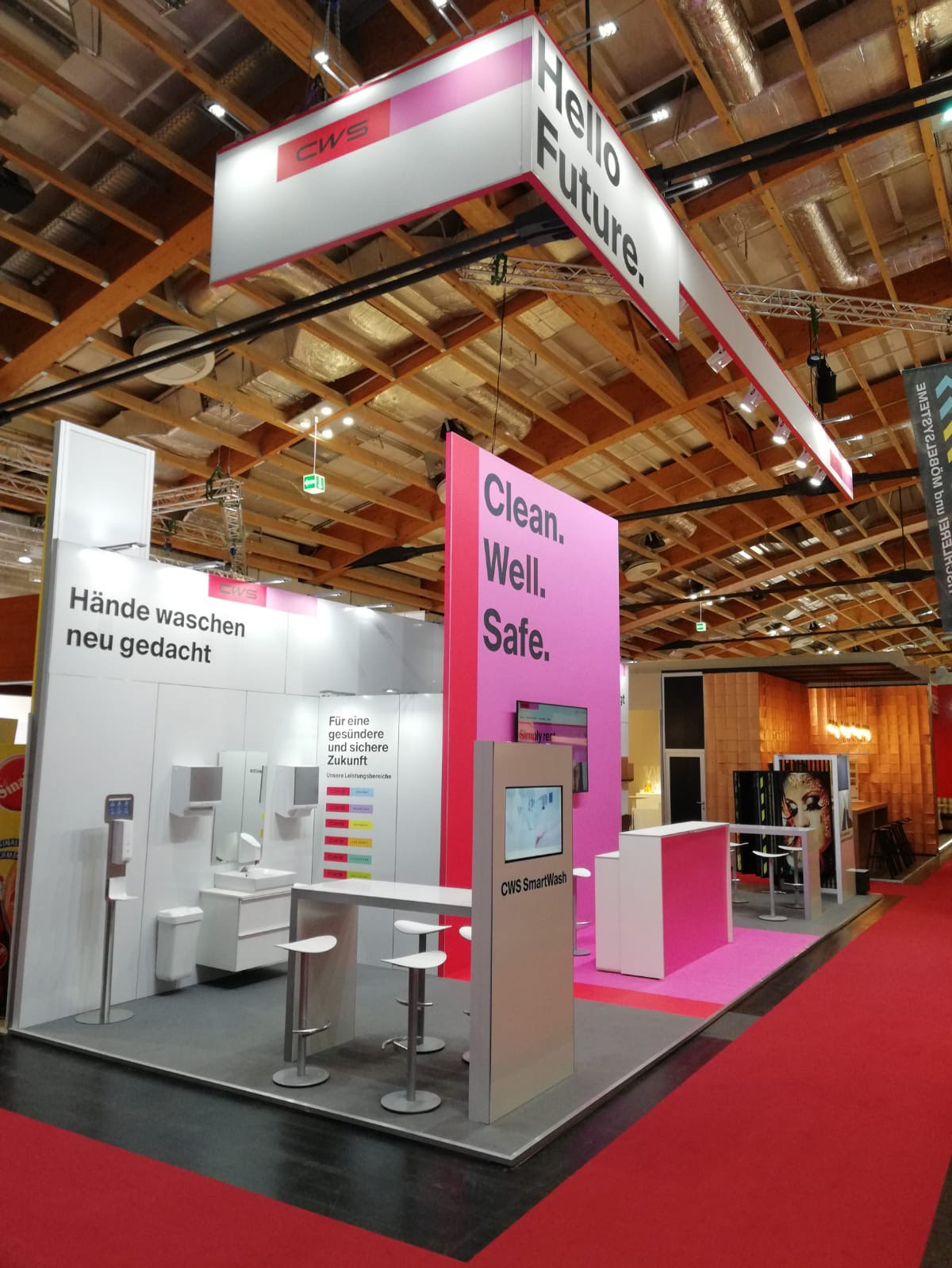 6 years we have been working closely with CWS-boco Austria for the ‘’Alles für den Gast’’ trade fair in Salzburg. In order to meet our client’s evolving needs, we have designed and realized three different stand concepts. The most significant challenge was to present their large product variety in a compact stand space without making the exhibition look overcrowded.